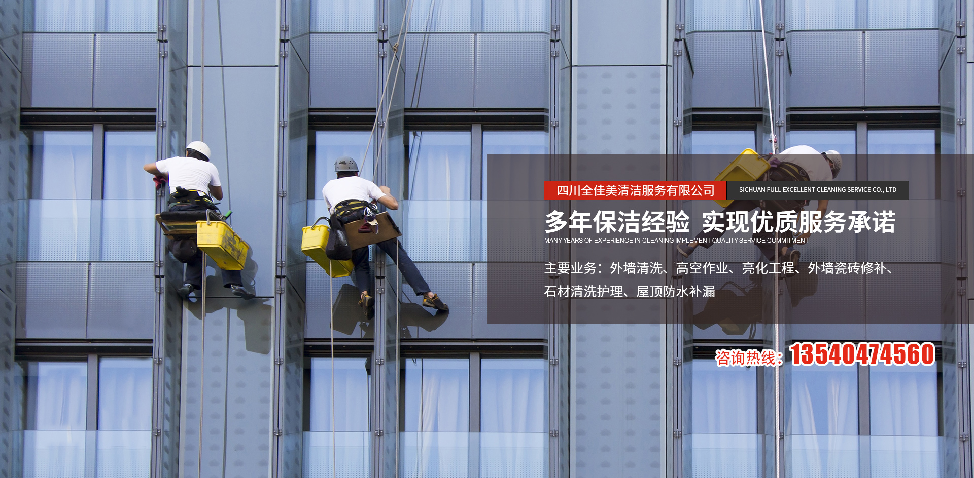 四川全佳美清潔服務(wù)有限公司成立于2017年11月20日,注冊資本200萬元人民幣,是一家專業(yè)從事高空外墻清洗,外墻維修,開荒保潔,石材養(yǎng)護(hù),外墻防水等一體化的工程服務(wù)公司。公司先后服務(wù)于成都鐵路培訓(xùn)學(xué)校,雙流空港酒店,省體育館等寫字樓及工業(yè)園區(qū)的外墻清洗保潔及維修服務(wù)。經(jīng)過多年的發(fā)展與努力,公司已具備一定的規(guī)模及實(shí)力?,F(xiàn)擁有一支技術(shù)精湛的服務(wù)團(tuán)隊(duì),以高標(biāo)準(zhǔn)的服務(wù)品質(zhì),專業(yè)的安全技術(shù)實(shí)力,為全川不同群體的客戶提供更安全,更周到的清洗服務(wù)解決方案,期待與你的合作。